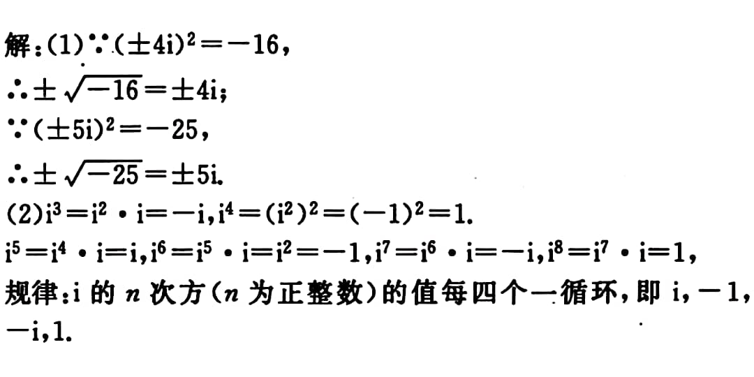 (2) 求 i 3 , i 4 , i 5 , i 6 , i 7 , i 8 ⋯ ⋯ {i^3},{i^4},{i^5},{i^6},{i^7},{i^8} \cdots \cdots i3,i4,i5,i6,i7,i8⋯⋯的值,你发现了什么规律? 将你发现的规律用式子表示出来。