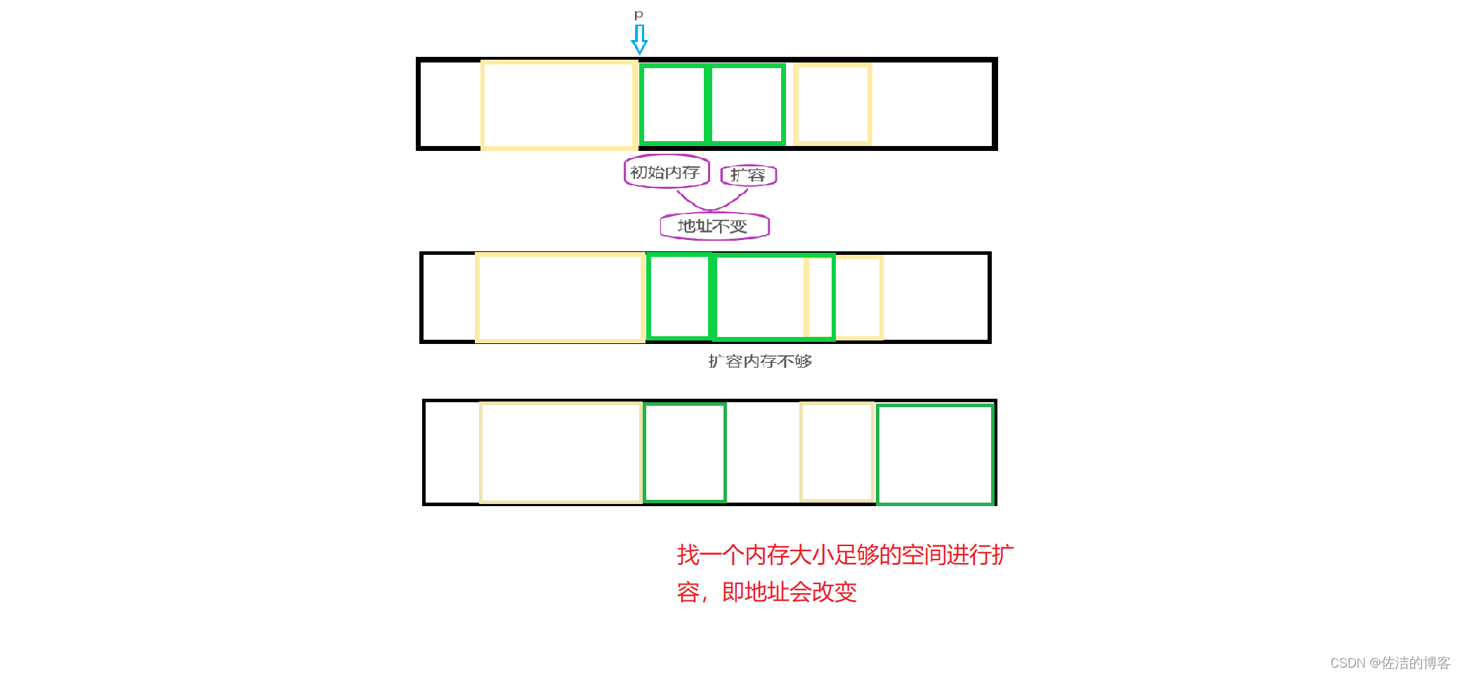 如果已经通过malloc函数或者calloc函数获得了动态空间,想改变其大小,可以用realloc函数重新分配。
