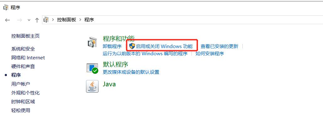 步骤:我的电脑--》属性--》控制面板--》程序--》启用或关闭windows功能--》