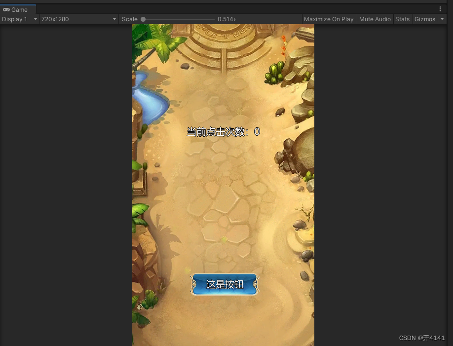 运行Unity,画面成功出现了,并且按钮也可以点击,只是目前还没有任何反应