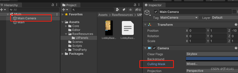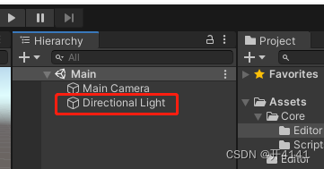 删除Directional Light 然后右键创建Create Empty(创建完后重命名为Main)用于挂载Main脚本