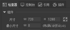 双击打开LobbyPanel在右上角检查器设置尺寸720*1280