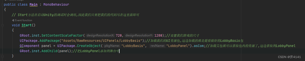 双击Main即可使用Rider打开Main.cs脚本,终于可以开始写代码了~