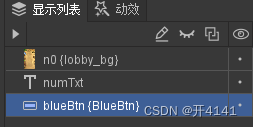 将按钮内自带的东西全删了,然后将blue_btn拖入,设置位置为0,0