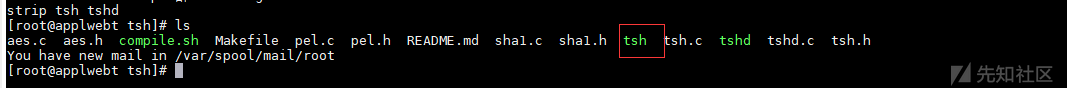 我打算留下一个tsh后门,Tiny Shell 是一款开源的Unix类后门shell工具,由C语言编写,体积小(在kali系统上编译后只有55K大小)