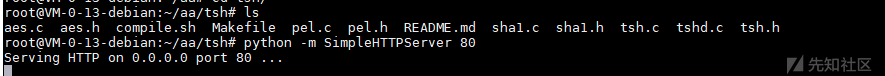把图中的tsh下载到自己的服务器上(在控制端执行监听)