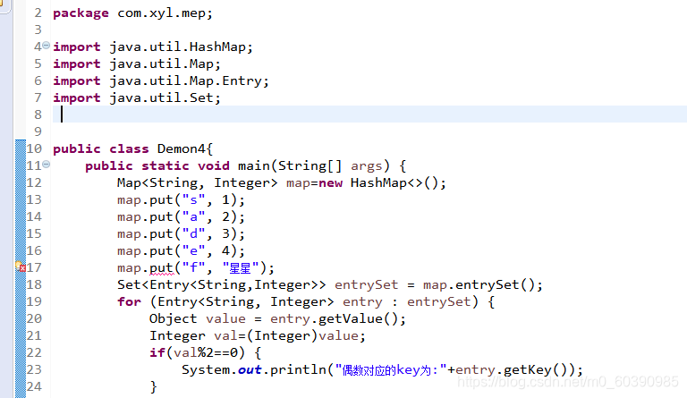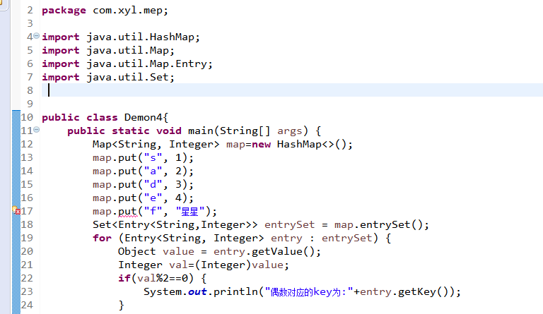 System.out.println("偶数对应的key为:"+entry.getKey());