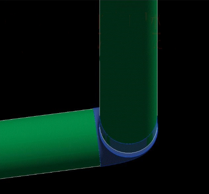 之后在通过修剪命令来把两个立管链接起来就可以实现了。如图所示