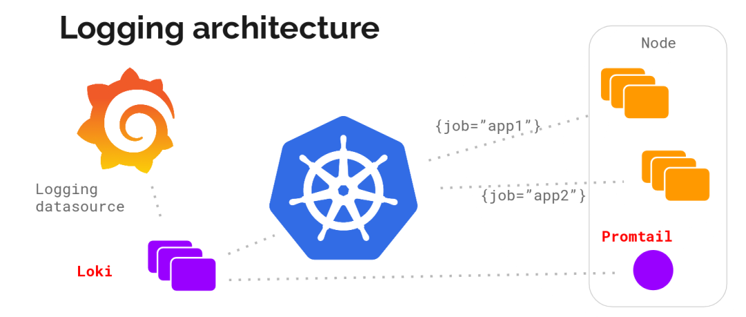 看到这个名字就会想到Prometheus,其实它们设计思想也是相通的,它作为一个客户端端代理运行在计算节点上,当然也可以通过边车模式运行在Pod中,主要功能是收集日志、为日志流添加标签、推送日志。