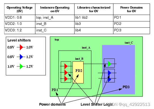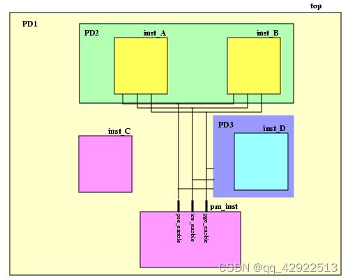 逻辑块(分层实例)、叶实例和引脚使用相同的主电源,并且可以同时打开或关闭,则它们属于相同的power domain。