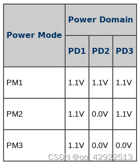 如果在域条件列表中未指定某个域,则认为该域在指定模式下关闭。在定义power mode时,建议不要依赖默认行为,并指定所有的电源域。