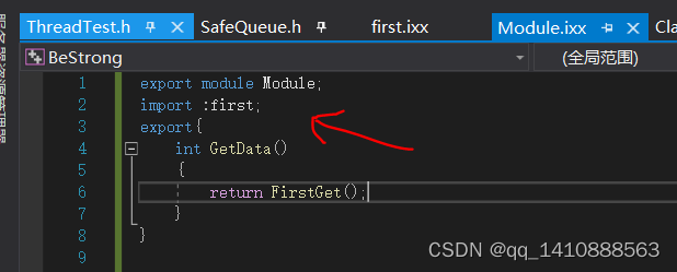 1.模块命名:export module 名字,代表这个是主模块位置
