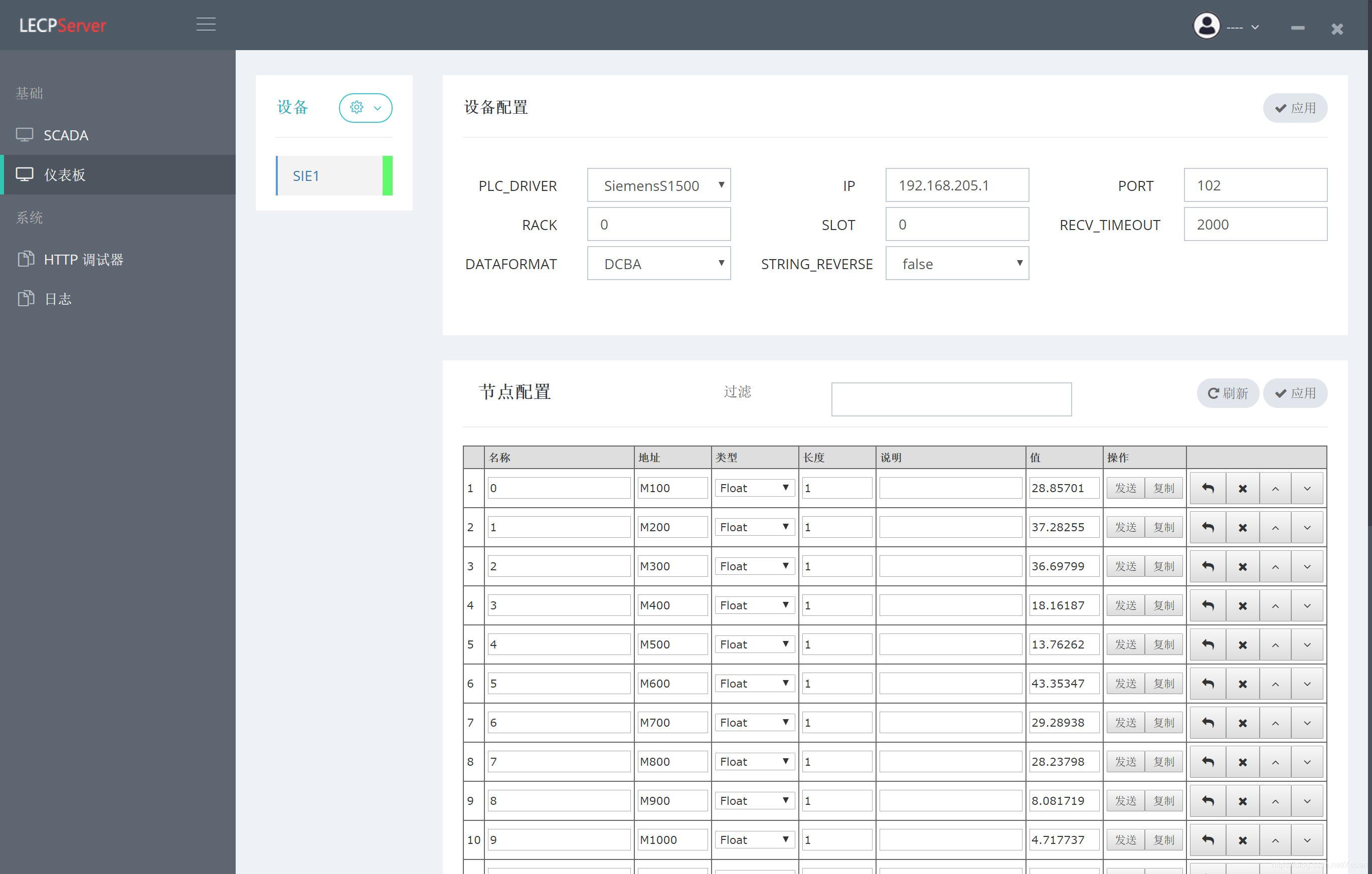 点击应用,这样就可以看到采样信息了,再点击到SCADA页面,我们可以看到效果如下: