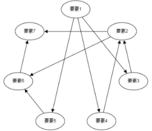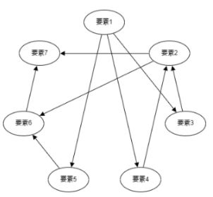 ISM是一种系统工程研究方法,其作用在于研究系统结构关系情况;比如下图(有向图)中,已知各要素间的影响关系情况,现希望使用解释结构模型将各种逻辑结构关系进行梳理,比如找出各要素的层级层次关系情况,此时则可以使用解释结构模型。