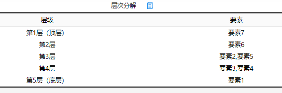 说明:最后SPSSAU展示‘层次分解’结果,层次分解表格展示各要素的层次分布情况;比如上图中,最后系统可拆分成5个层次,分别每个层次中的要素已经列出,可通过层次分解图绘制出图形。