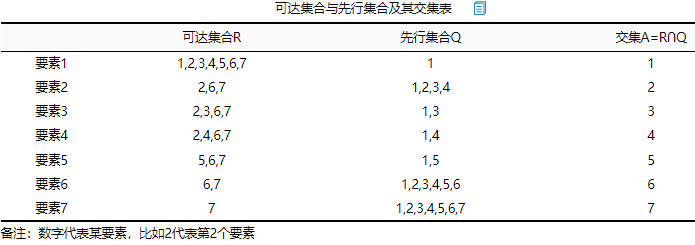 第二:先行集合Q,其表示‘可达矩阵’某要素对应列中,包括有1的元素集合;