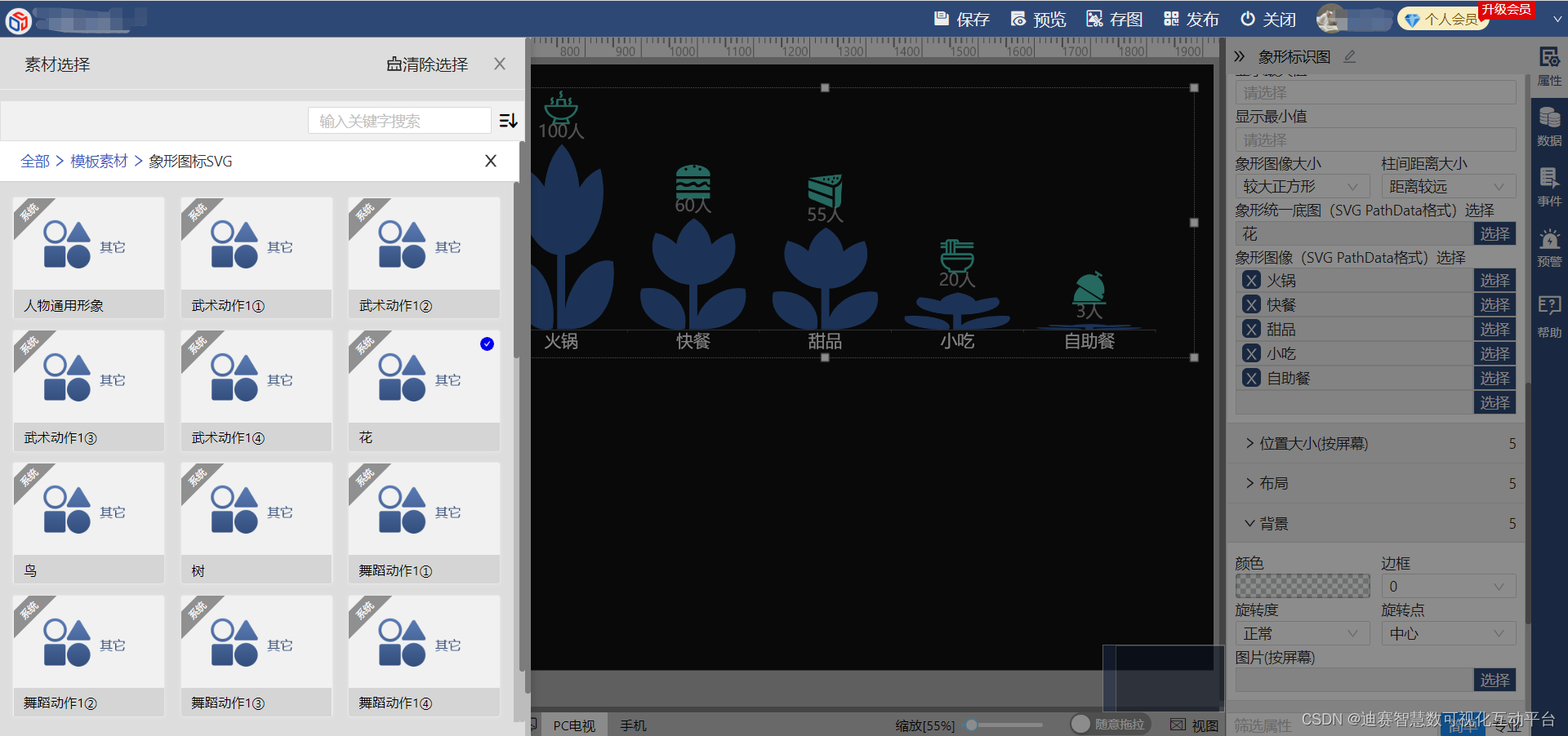 3、修改图形样式。平台提供丰富的svg素材,直接选择即可。