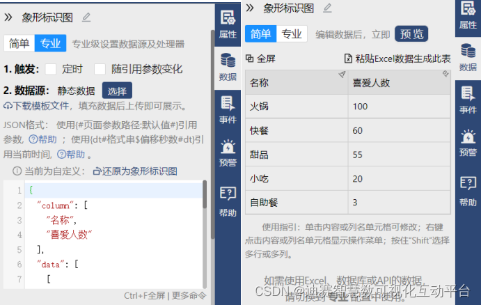 2、填入数据,简单模式(右图)下一键粘贴即可,也可以选择专业模式(左图)上传数据。简单配置适合绝大部分的普通用户,专业配置更适合懂得代码知识的用户。