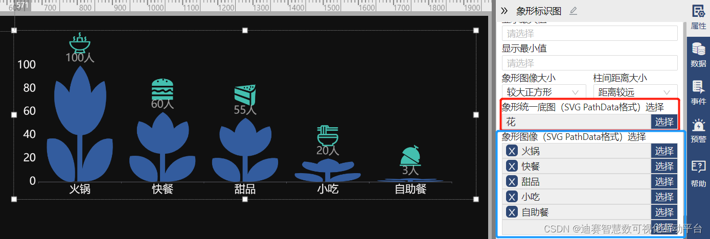 象形标识图与象形柱图,二者相差不大,在象形柱图的基础上多了标识图的显示。