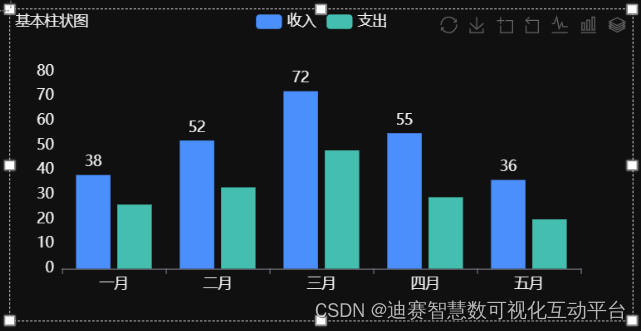 它的适用场合是二维数据集。如下图,不同月份的收支情况。