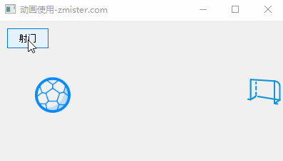 运行上述代码,点击“射门”按钮,我们将会得到如下动图所示的动画: