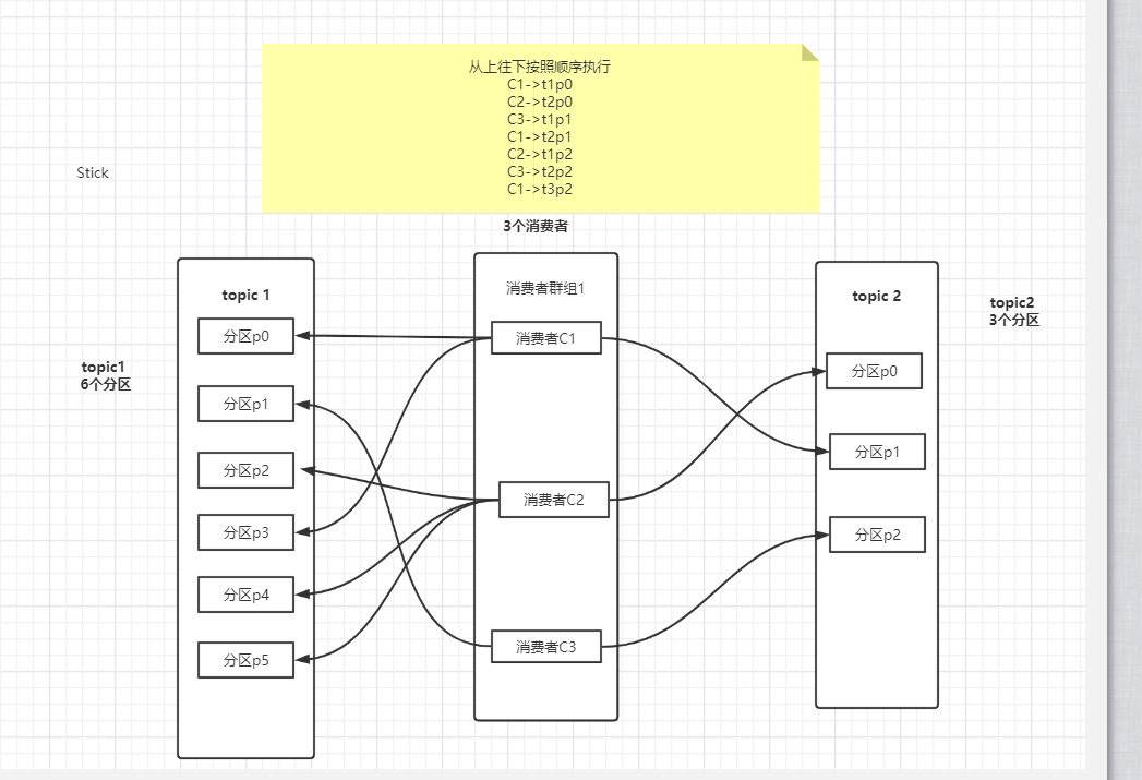 - 然后轮询地将分区分配给消费者