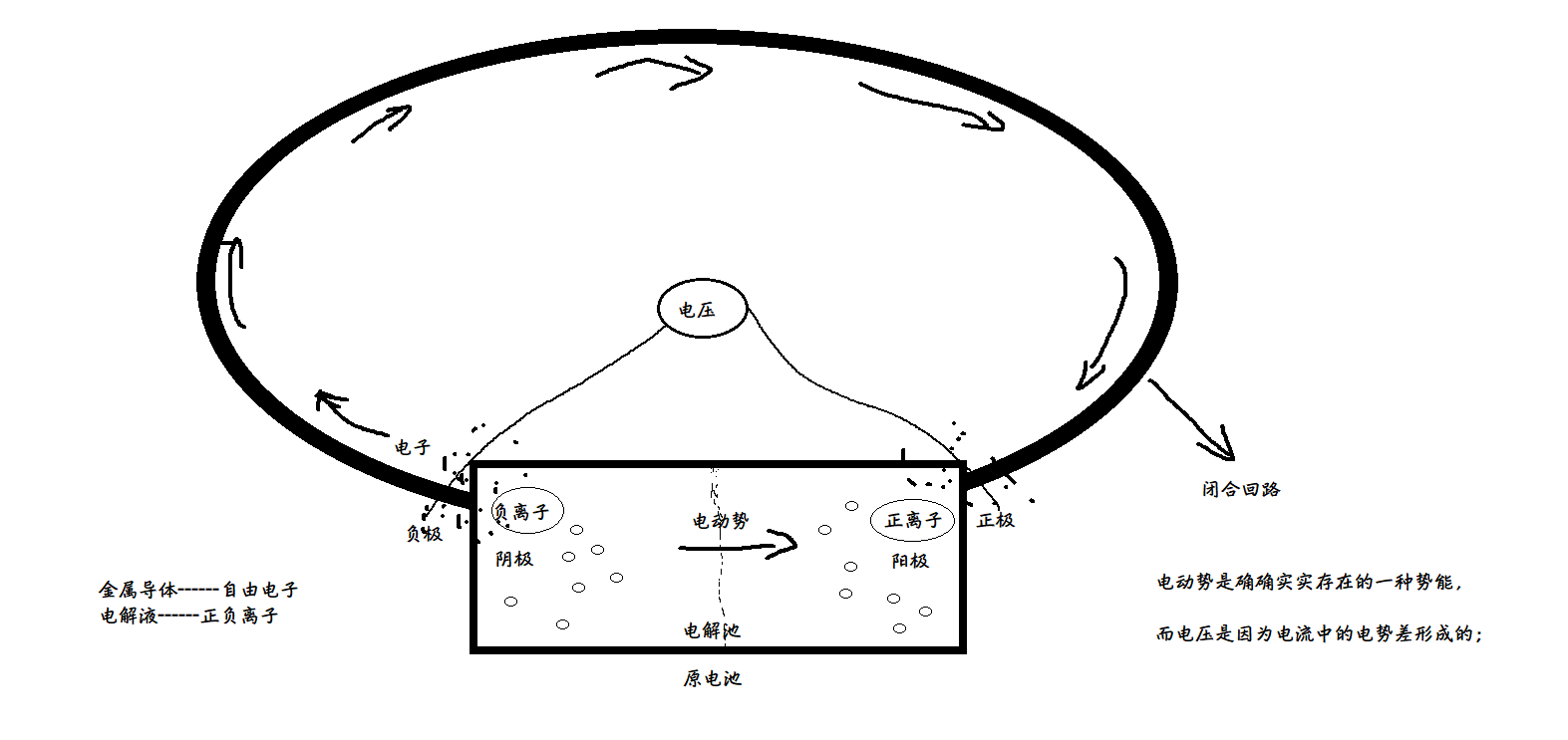 电动势即电子运动的趋势,能够克服导体电阻对电流的阻力,使电荷在闭合的导体回路中流动的一种作用。