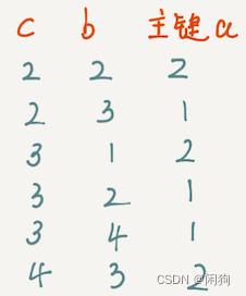 索引 cb 的组织是先按 c 排序,再按 b 排序,同时记录主键 a