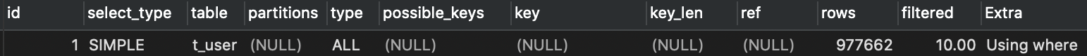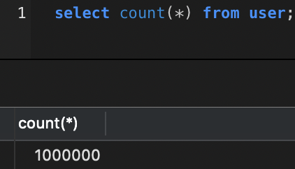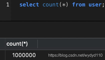先来个小测试,我先挖来一张有 100 0000 条记录的用户表 user