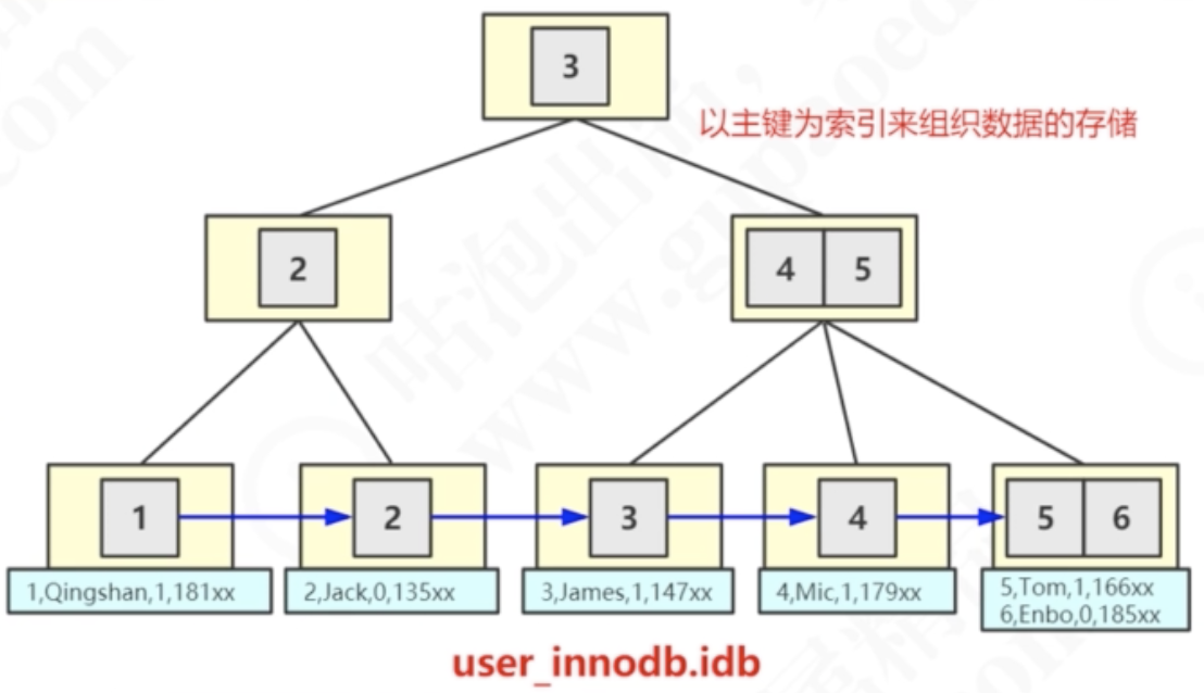 (1)非叶子节点不存储数据,只存储索引值,这样便于存储更多的索引值。所以索引字段越小越好,这样一次IO操作获取的数据就越多。