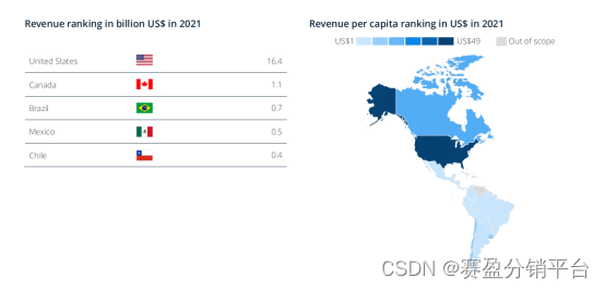 2021年,美洲在全球户外家具市场份额中占比达42%,近乎一半,其中美国的户外家具的销售额达到164亿美元,排名第一。