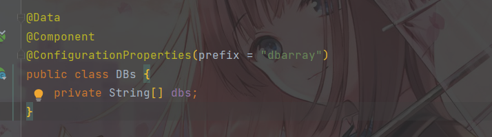 这样就可以吧dbs下的数组全部注入到dbs属性中,注意:这里的属性名必须和dbarray下的分组名称一致