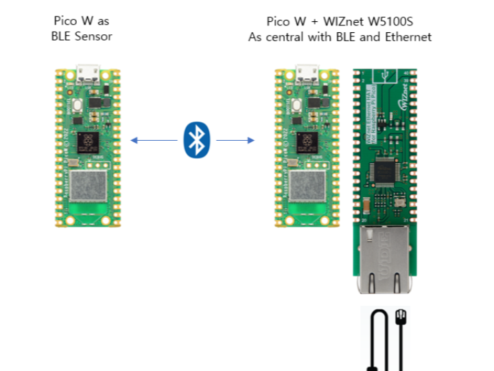 该项目旨在演示如何使用 WIZnet 产品将 Pico W 转变为 BLE 转以太网中心