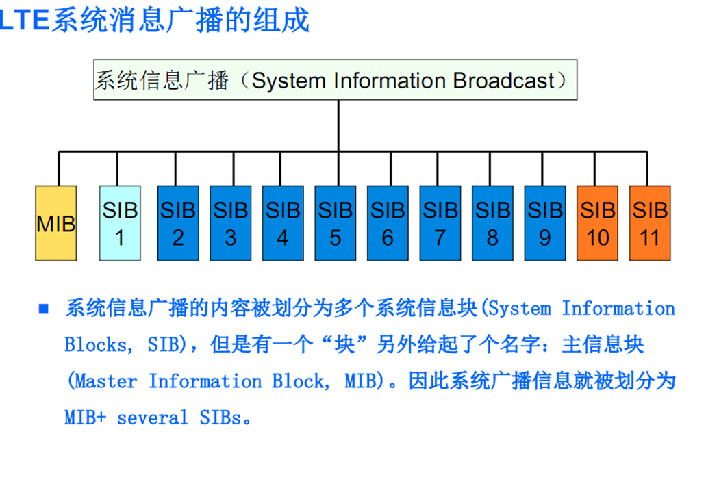 - 系统信息可分为MIB ( MasterInformationBlock)和多个 SIB (SystemInformationBlock)。