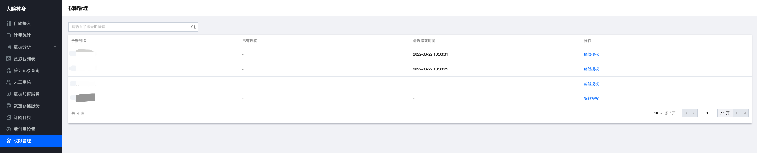 通过权限管理模块,主账号可以向子账号授权,被授权的子账号就可以看见所有子账号的调用情况。