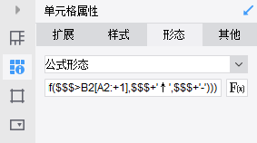 实现方法:在公式形态中添加趋势箭头(公式形态只是修改的数据显示值,对实际值并无影响),在条件属性中添加变色条件