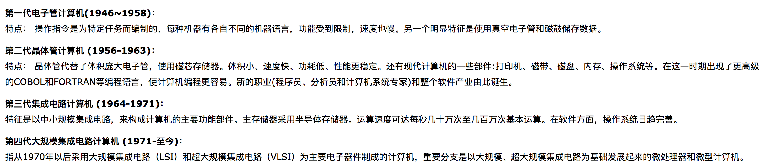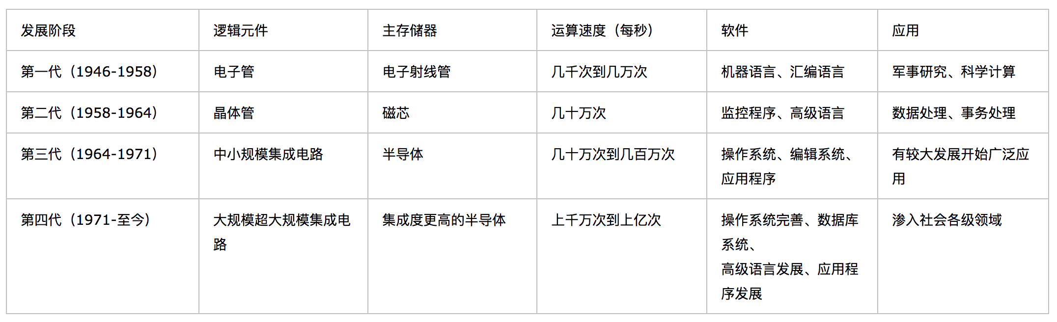 来看看电子计算机时代的四个时期的电子计算机的对比: