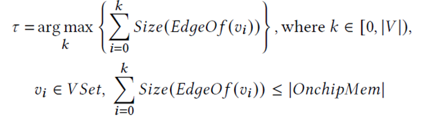 价值感知内存访问:在设计如何访问高价值数据和低价值数据的机制之前,需要先确定哪些数据是高价值数据,应该被存储在UltraRAM上。GraSU的策略是在UltraRAM上存储尽可能多的高价值数据,因此高价值数据的计算如下所示: