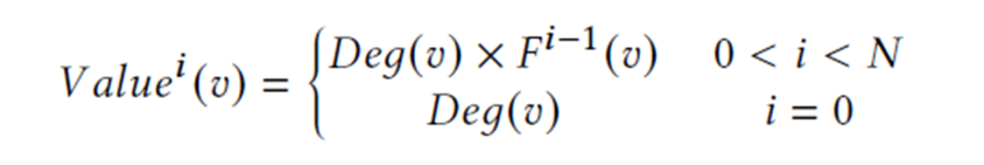 增量价值度量:根据“富者越富”[3]这种现象,量化顶点价值最直觉的方法是使用顶点的度数。这种方法的确有用,但准确性远低于理想情况。原因有两方面:其一,一些低度顶点随着更新批次的进行可能被插入很多边从而变成高度顶点,比如一个默默无闻的演员因为新作品而大火;其二,一些高度顶点的边的增长速度可能比其他顶点要慢,比如一个“超级传播者”被隔离后,病毒传播链被切断。这两种现象都表明了一个问题,那就是顶点的价值不仅取决于顶点目前的度数,还取决于其历史的更新频率。因此本文提出了如下的增量方法来量化一个顶点的价值 ,其中所有顶点的价值被初始化为其度数,然后根据其上一轮的更新次数进行增量修改。