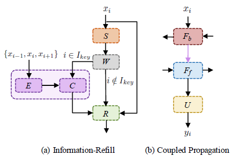我们以BasicVSR为骨干,介绍了两个新颖的组件-Information-refill和coupled propagation(IconVSR),以减轻传播过程中的误差累积,并促进信息聚合。