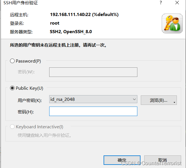 2.服务器返回其支持的协议版本以及服务器的公共主机密钥,该密钥用于判断服务器是否是预期的主机;