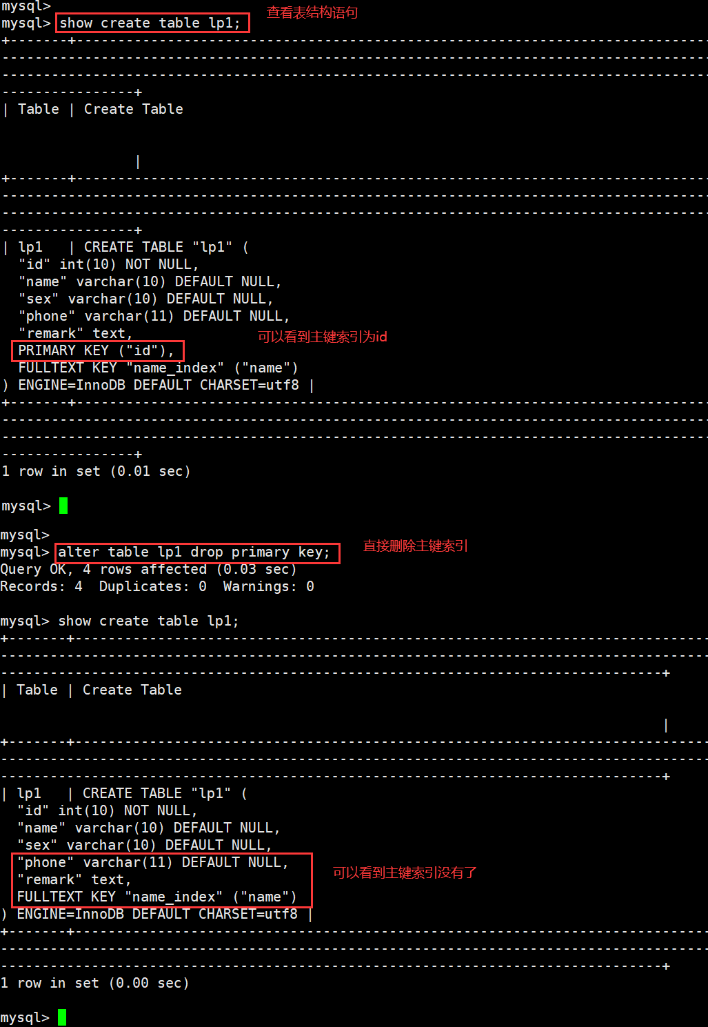 ●删除主键索引