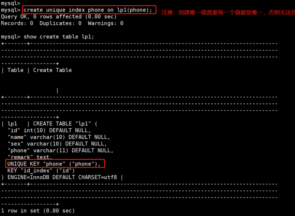 (2)唯一索引