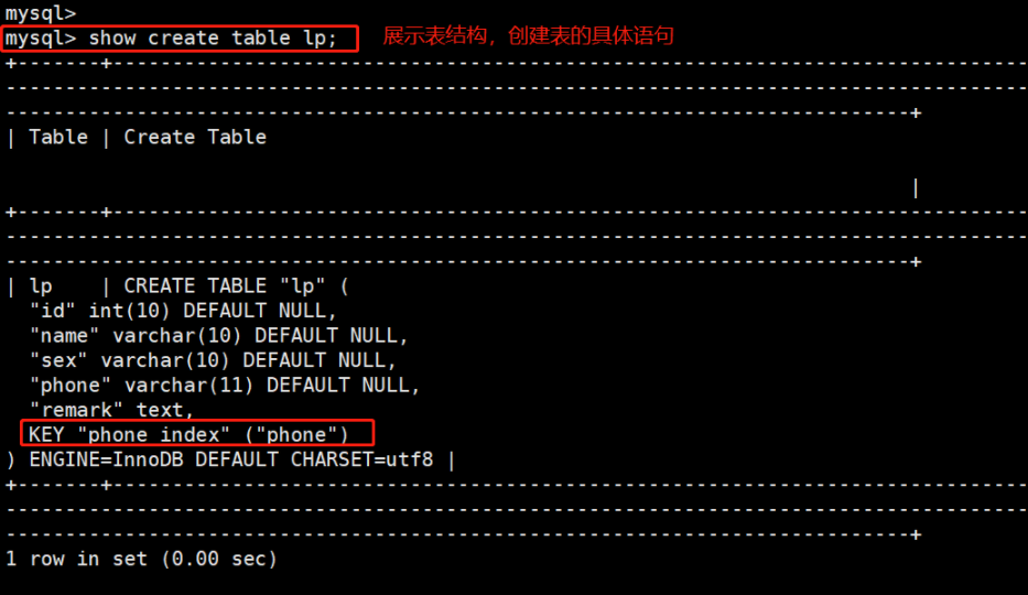- #(列名(length) ): length是可选项,下同。如果忽略length的值,则使用整个列的值作为索引。如果指定,使用列的前length个字符来创建索引,这样有利于减小索引文件的大小。