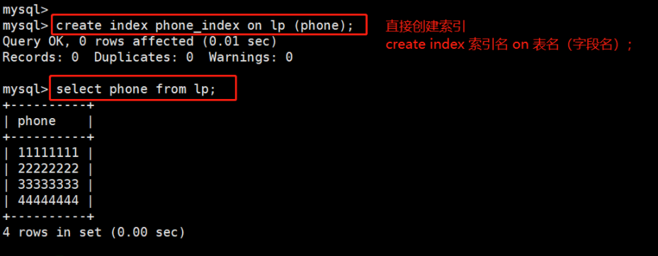 CREATE INDEX 索引名 ON 表名 (列名[(length)]);