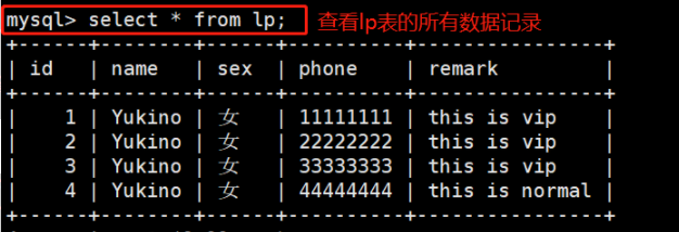 insert into member values (2,'lisi',456456,456456,'beijing','this is vip!');