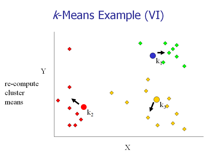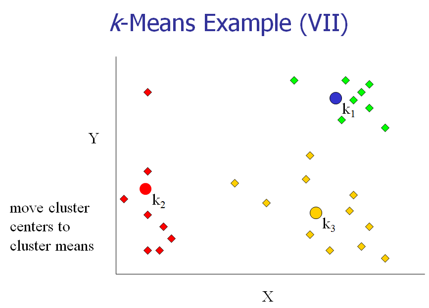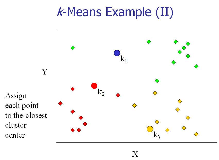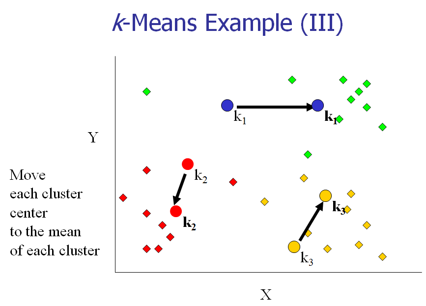 [3] 把每个对象分配给距它最近的中心点做属的cluster。