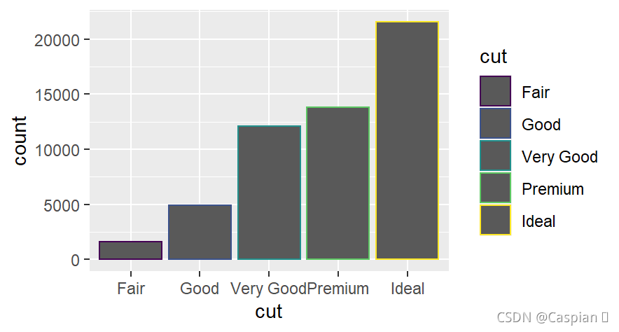 ggplot(data=diamonds)+geom_bar(aes(x=cut,color=cut))
