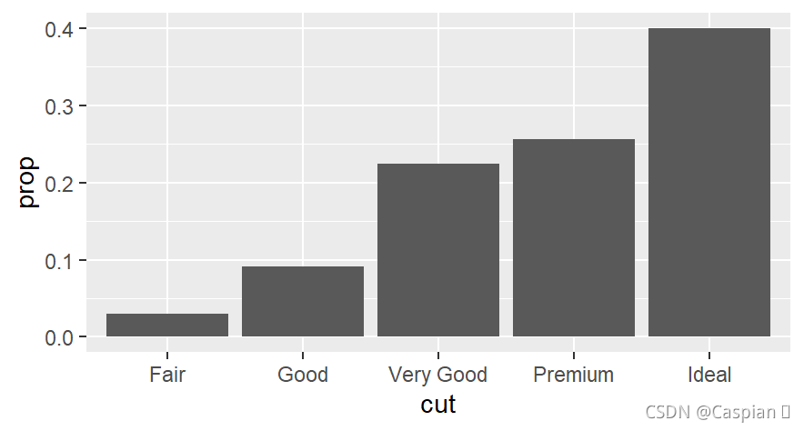 ggplot(data=diamonds)+geom_bar(aes(x=cut,y=..prop..,group=1))