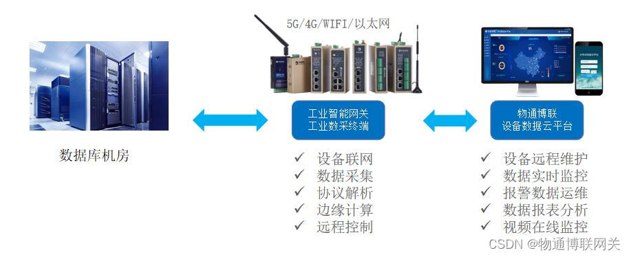 物通博联工业智能网关可以接入各类型PLC、传感器等设备,实时采集数据并上传到校园机房监控平台,从而监控机房设备运行状态、环境变化,快速接收报警信息并采取措施,维护机房安全,避免重大事故。